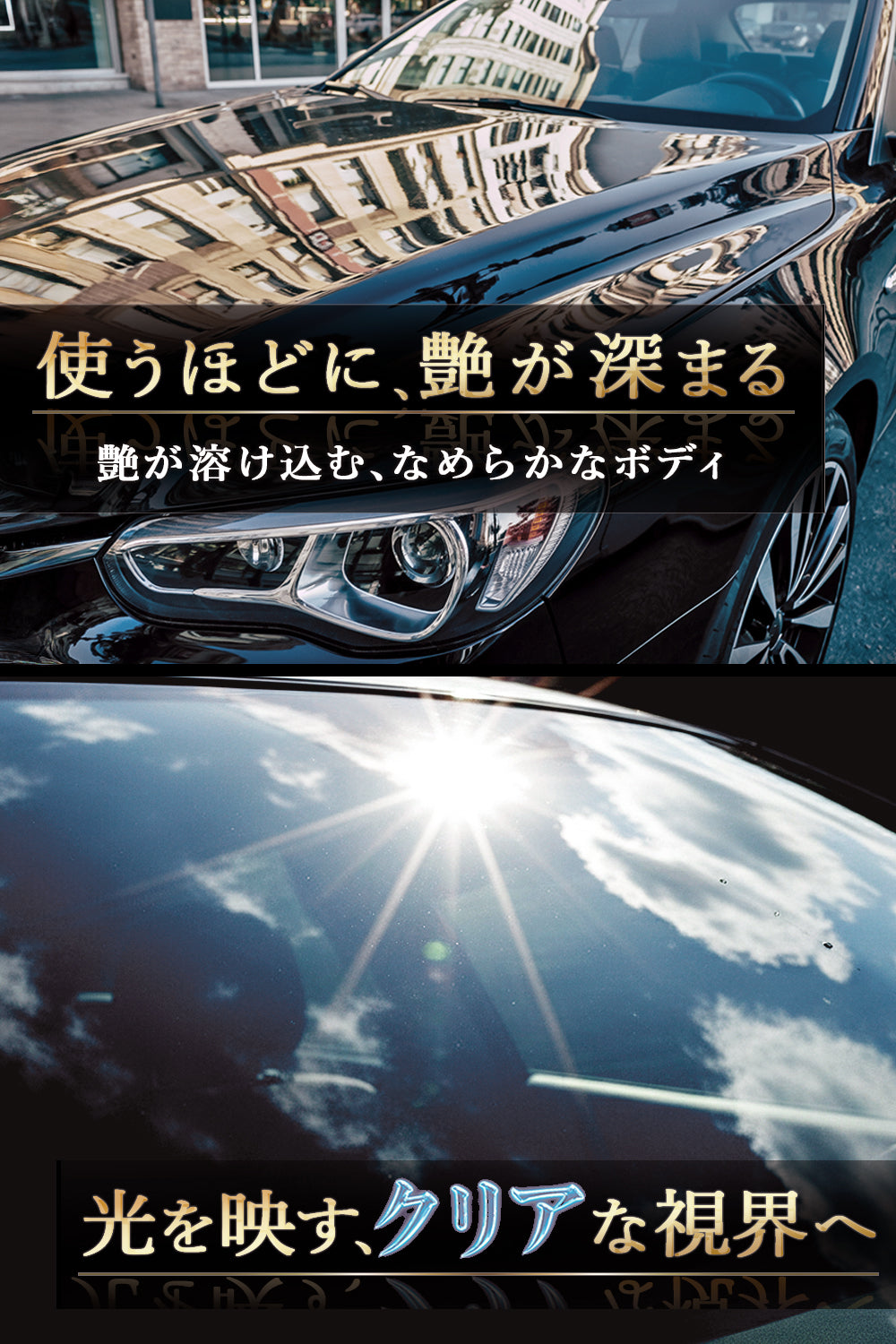 ●【使用方法】(1)あらかじめ洗車をして砂埃や汚れを除去する。ボディが濡れたままでも使用可能。(2)成分が分離しやすいため、トリガーをロックした状態で本製品をよく振る。(3)施工面から15cm〜20cm離して、ワンパネルごとに適量を直接スプレーする。(4)付属のマイクロクロスで塗り伸ばしながら拭き上げる。